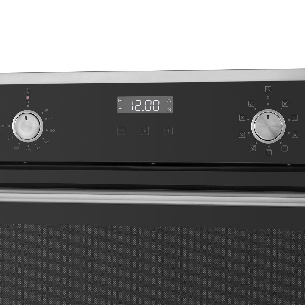 Комбинированное управление реализовано в виде сенсорного дисплея и поворотных цельнометаллических ручек PUSH PULL черного цвета, которые легким нажатием убираются внутрь корпуса. Можно выбрать режим работы, температуру (50-250оC), установить таймер и блокировку от детей. В данной модели есть 10 режимов: традиционный нагрев, большой гриль, конвекционный нагрев, малый гриль, разморозка, конвекция с нижним нагревом, горячий воздух, пицца, объемный турбогриль, освещение.