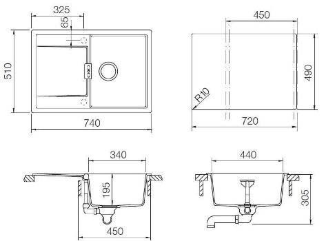 Размер мойки 740x510