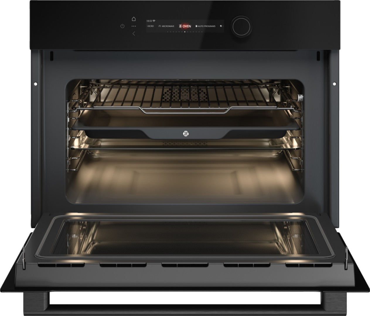 - Комплектация: 1 х универсальный противень, 1 х решетка, 1 х стеклянный противень, 1 х термозонд