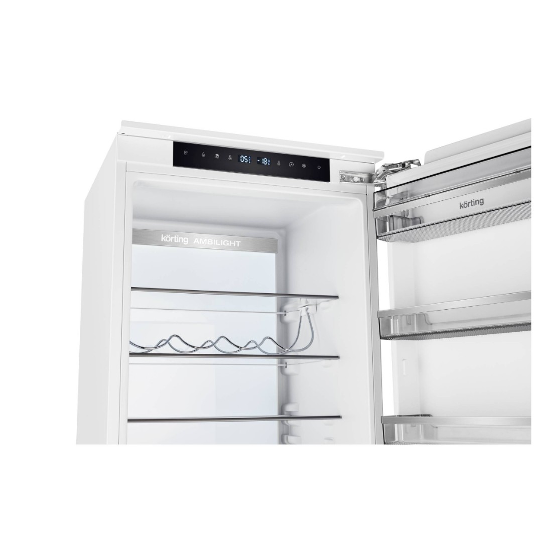 Холодильник KSI 19547 CFNFZ – современный высокотехнологичный встраиваемый бытовой прибор, оснащенный цифровым дисплеем и сенсорным управлением. Общий объем холодильника составляет 267 литров, из которых 200 литров предназначены для холодильной камеры, а 67 литров – для морозильной. Современная технология охлаждения No Frost устраняет необходимость в периодической разморозке, что значительно упрощает уход за прибором. Равномерное распределение температуры обеспечивается благодаря динамическому охлаждению: специальный вентилятор перемешивает воздух, что также способствует более быстрому охлаждению продуктов.