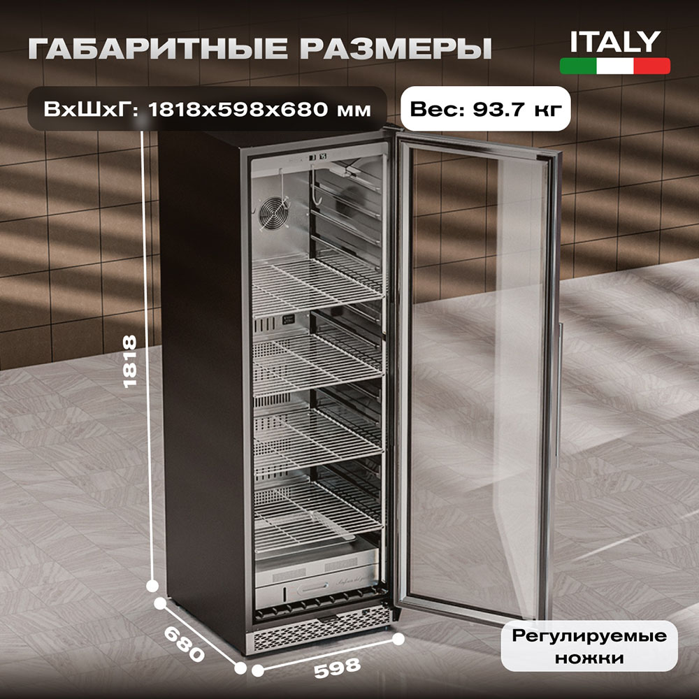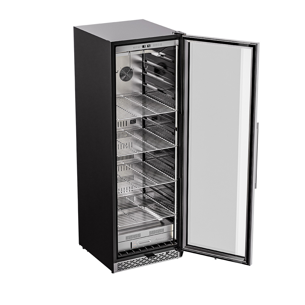 Благодаря широкому температурному диапазону от +1 до +25°C, можно точно настроить параметры для каждого вида мяса. Корпус из стали и стеклянная дверь обеспечивают не только практичность, но и презентабельный внешний вид, который впишется в любой интерьер.